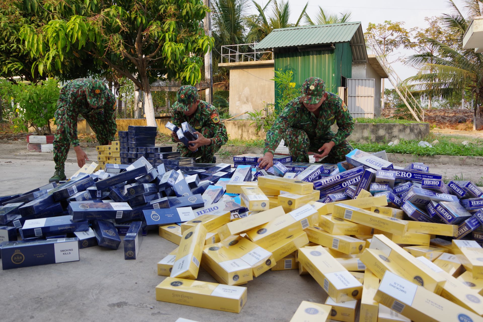 Khi phát hiện lực lượng tuần tra, các đối tượng đã bỏ ghe bơi qua suối chạy vào khu rừng tràm, tổ công tác tiếp tục truy đuổi, nhưng đối tượng đã lợi dụng địa hình phức tạp chạy qua biên giới trốn thoát, để lại 5 bao tải chứa 5.000 gói thuốc lá ngoại các loại.