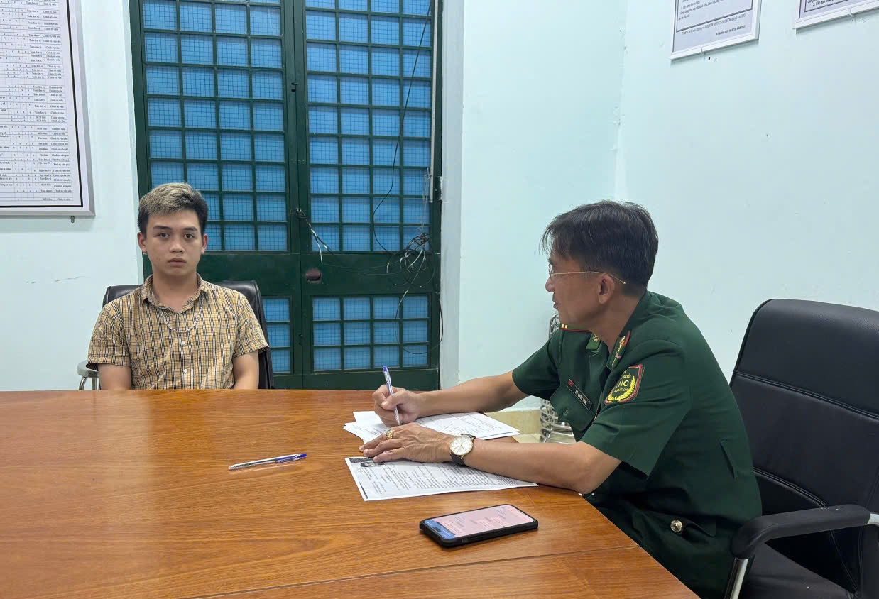 Tổ công tác Trạm Biên phòng CKQT Mộc Bài làm việc với đối tượng Nguyễn Lê Minh Khang.
