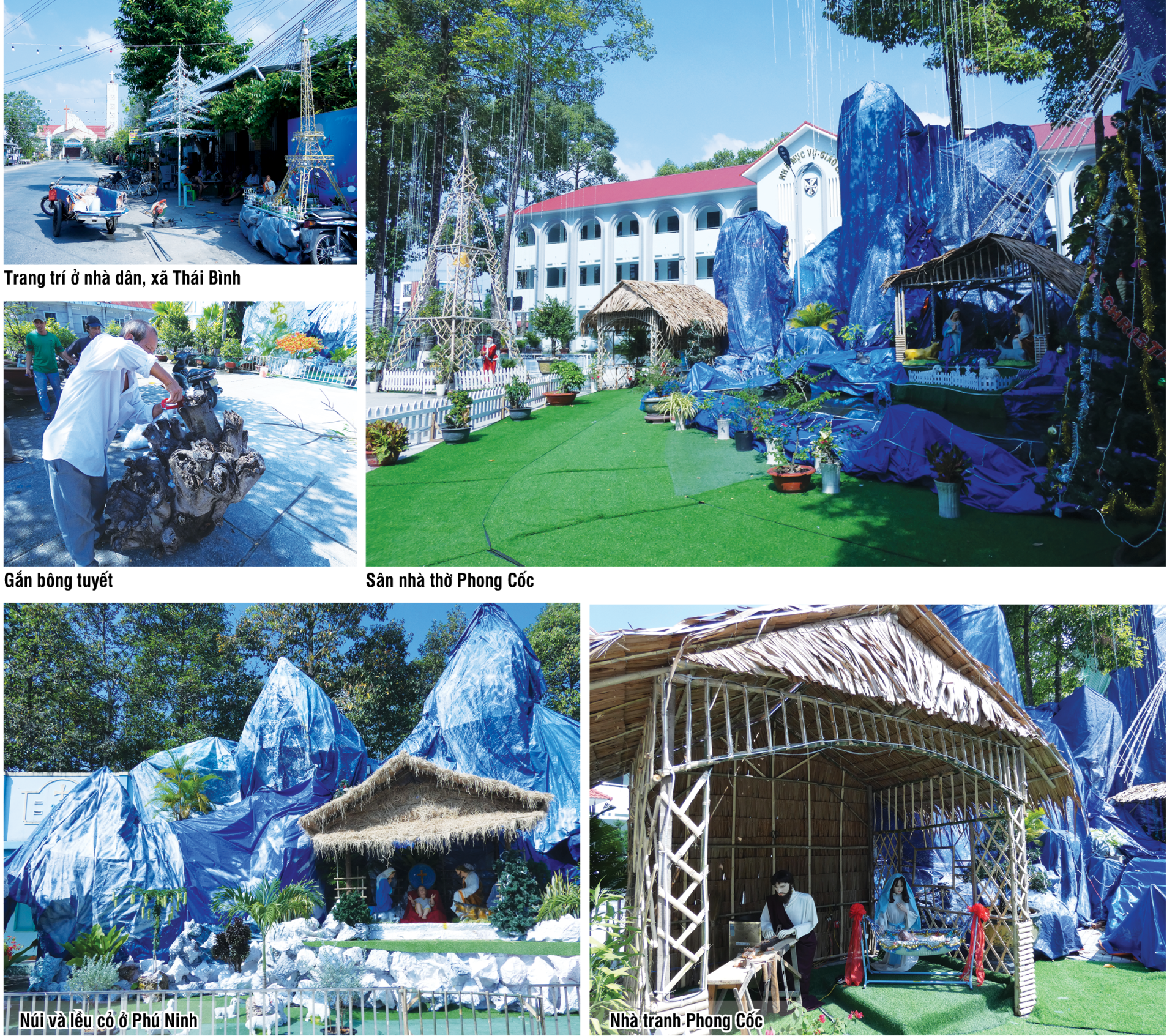 Ở mọi nơi, việc trang trí cho núi giả và hang đá Bê-lem, mà theo truyền thuyết là nơi Thiên Chúa giáng sinh, là quan trọng nhất. Như ở giáo xứ Phú Ninh, dù cơ sở vật chất còn khá khiêm tốn, nhưng hang đá vẫn được dựng rất lớn đẹp, trang trí cầu kỳ với lều cỏ và các tượng nhỏ. Một bác còn đang cặm cụi đính từng bông tuyết lên gốc cây khô để điểm trang thêm.