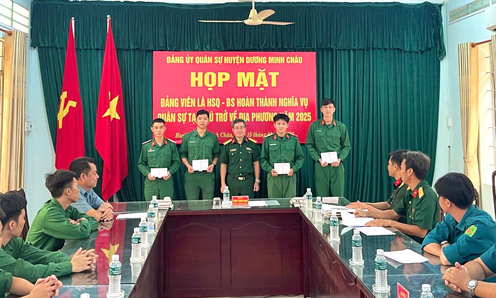 Cùng ngày, Đảng uỷ Quân sự huyện Dương Minh Châu đã tổ chức gặp mặt 9 đảng viên là hạ sĩ quan – binh sĩ hoàn thành nghĩa vụ quân sự tại ngũ trở về địa phương năm 2025 và trao 4 số tiết kiệm cho 4 đảng viên, mỗi sổ trị giá 20 triệu đồng nhằm giúp các đảng viên ổn định cuộc sống và phát triển kinh tế gia đình.