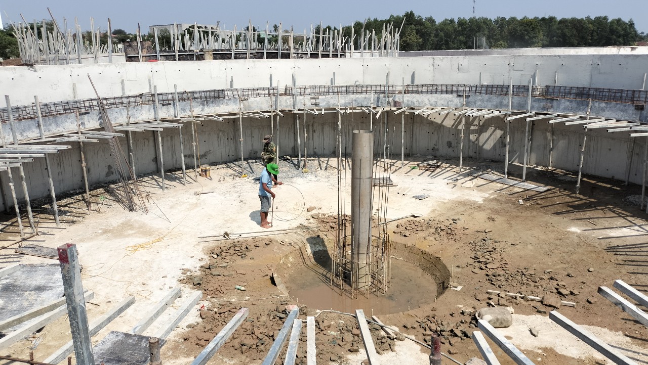 Các bể chứa đã cơ bản thi công xong.