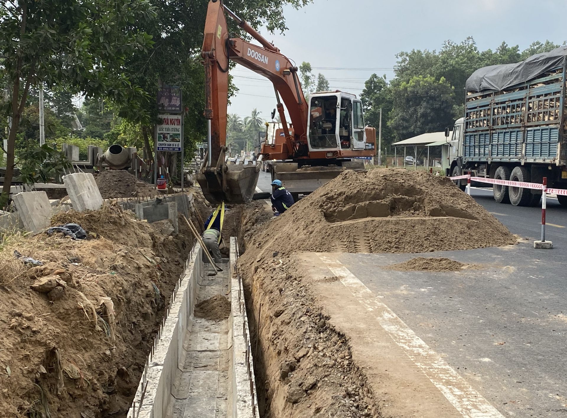Thi công hệ thống thoát nước quốc lộ 22B đoạn qua phường 1, thành phố Tây Ninh.