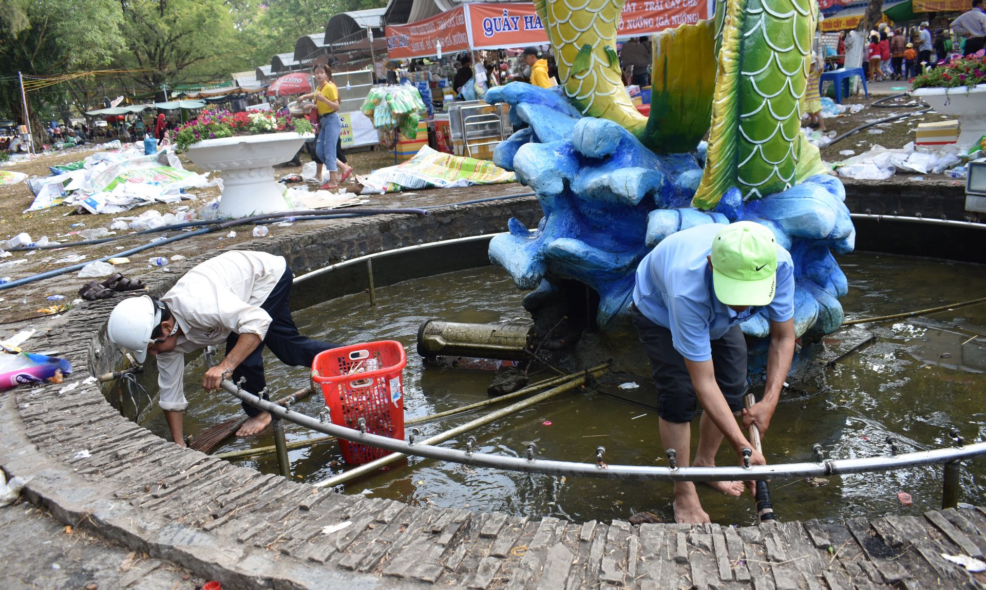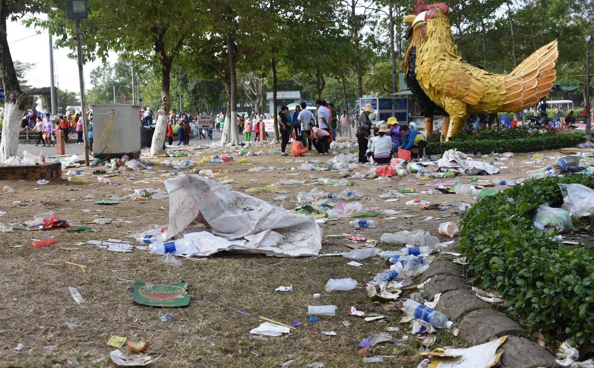 Sau đêm khai hội thật hoành tráng, khu du lịch núi Bà Đen ngập tràn rác và rác.