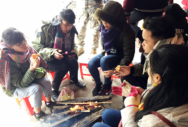 Các bạn trẻ thưởng thức đồ nướng tại Sa Pa.