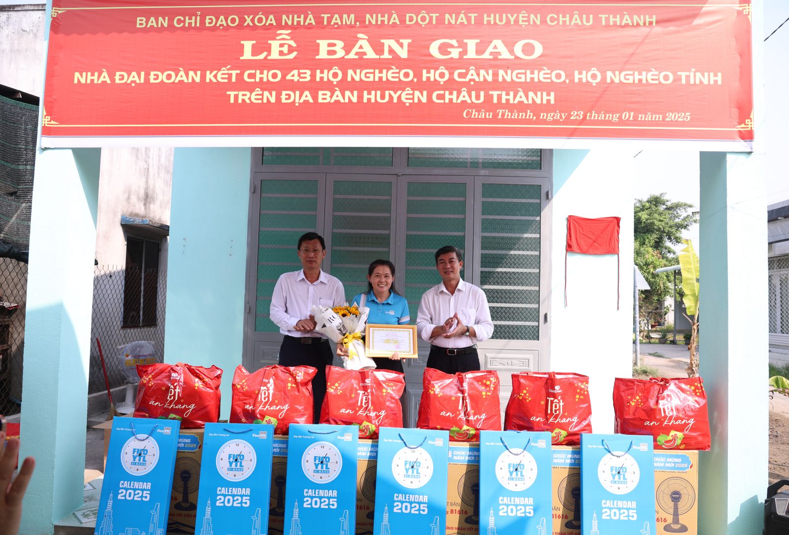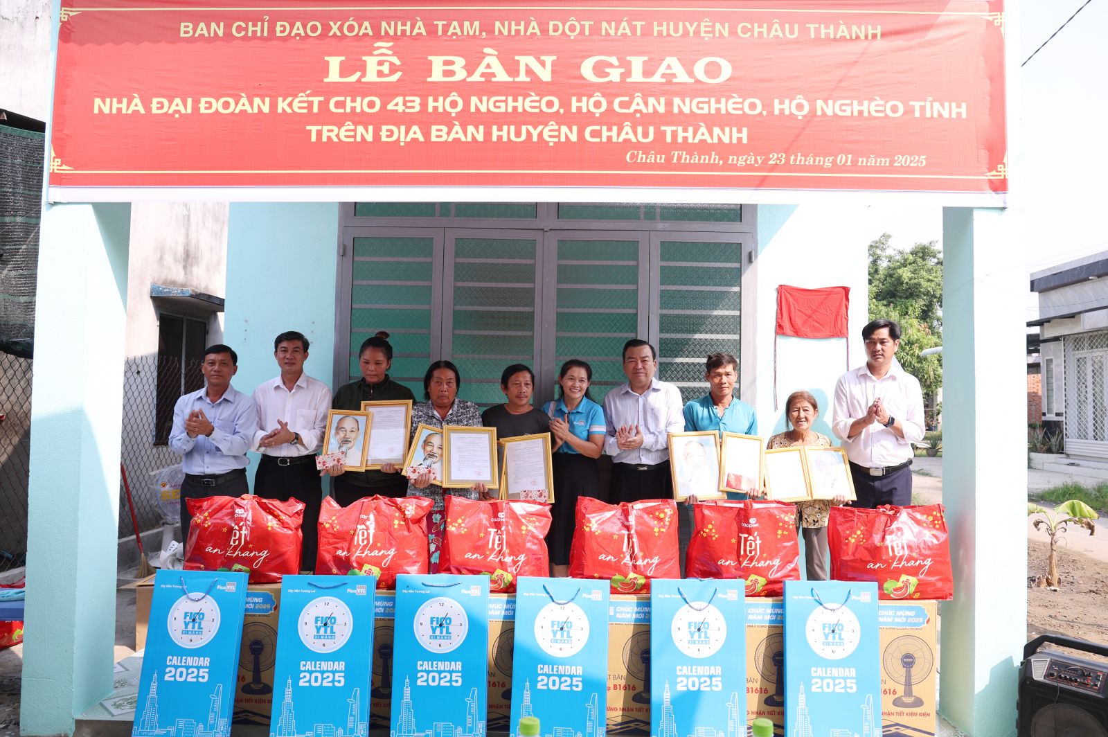 Được biết, trong sáng 23.1, Ban Chỉ đạo xoá nhà tạm, nhà dột nát huyện Châu Thành cũng đã tổ chức lễ bàn giao đợt 1 gồm 43 căn nhà đại đoàn kết cho các hộ có hoàn cảnh khó khăn có điều kiện vui xuân, đón tết.