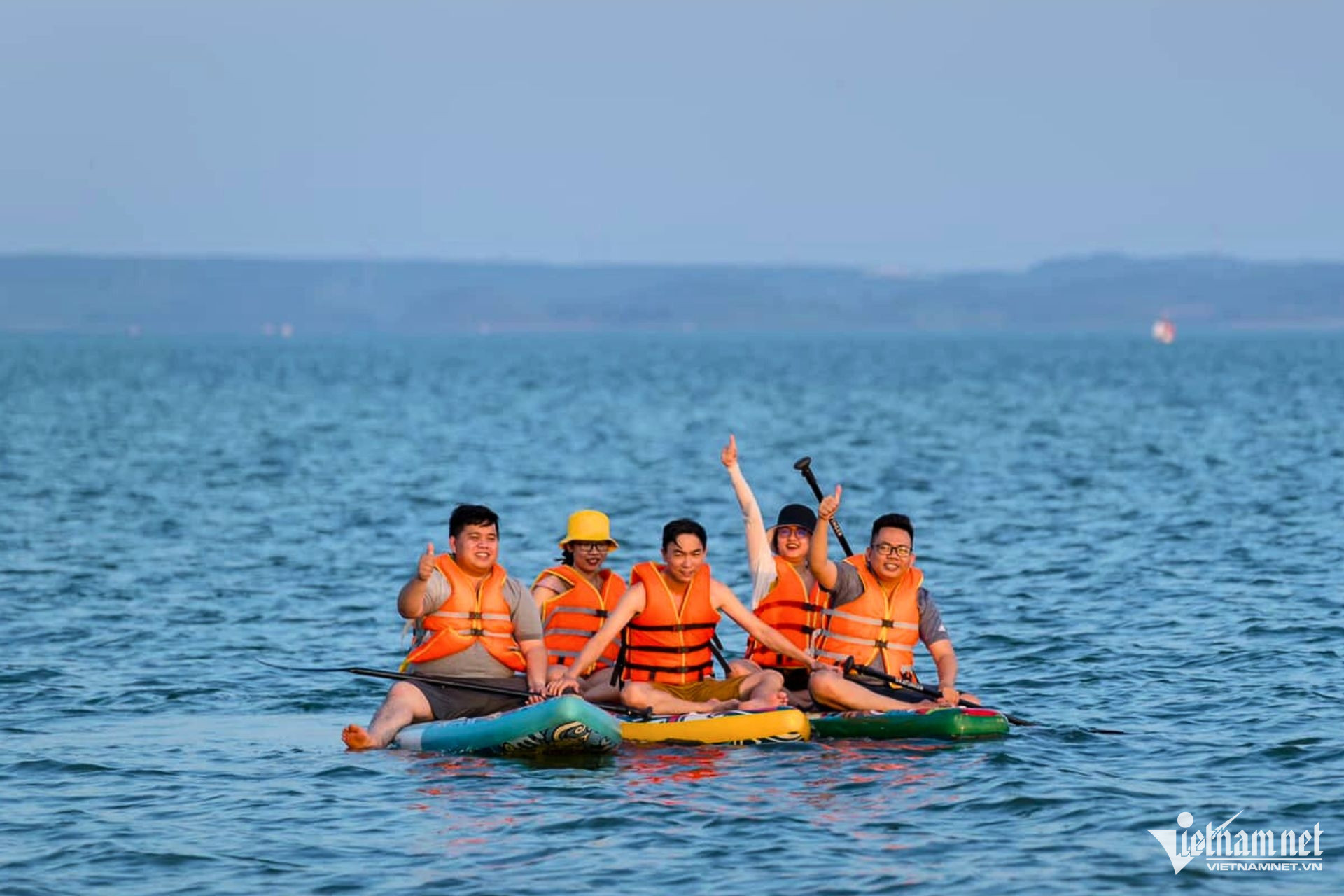 Nhóm bạn trẻ chèo SUP trên hồ Trị An. Ảnh: Hoàng Anh