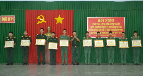 Tại hội nghị, Bộ CHQS tỉnh tặng giấy khen cho 1 tập thể và 9 cá nhân đạt thành tích xuất sắc trong công tác tìm kiếm, quy tập hài cốt liệt sĩ quân tình nguyện và chuyên gia Việt Nam hy sinh trong các thời kỳ chiến tranh ở Campuchia.