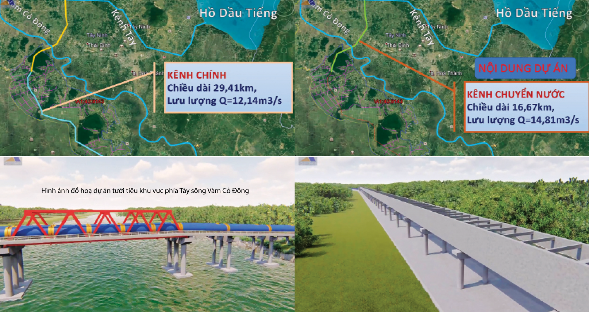 Theo Ban Quản lý dự án đầu tư và xây dựng ngành nông nghiệp tỉnh, Dự án tưới tiêu khu vực phía Tây sông Vàm Cỏ Ðông là dự án công trình thuỷ lợi cấp II, với tổng mức đầu tư 1.500 tỷ đồng, được UBND tỉnh phê duyệt và chính thức khởi công ngày 30.4.2018, chia thành 14 gói thầu xây lắp với tổng giá trị là 671 tỷ đồng.