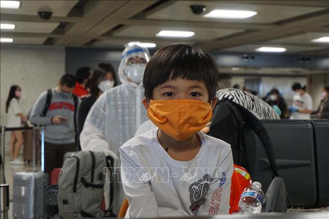 Một hành khách nhí trên chuyến bay thứ 2 của Vietnam Airlines đưa công dân Việt Nam từ Mỹ về nước. Ảnh: Đặng Huyền/Pv TTXVN tại Mỹ