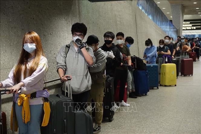 Các du học sinh vào khu tập trung tại sân bay quốc tế Washington Dulles, Washington DC, Mỹ để chuẩn bị khởi hành về nước. Ảnh: Đặng Huyền/Pv TTXVN tại Mỹ
