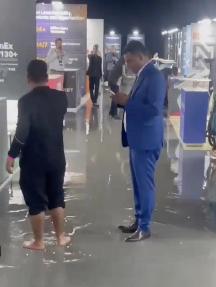 Nước mưa tràn vào bên trong các trung tâm hội nghị...