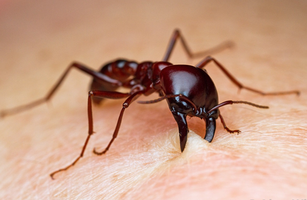 Hàm dưới của kiến rất chắc khỏe, có thể đâm sâu vào da người, khép chặt vết thương. Ảnh: Alex Wild Photography