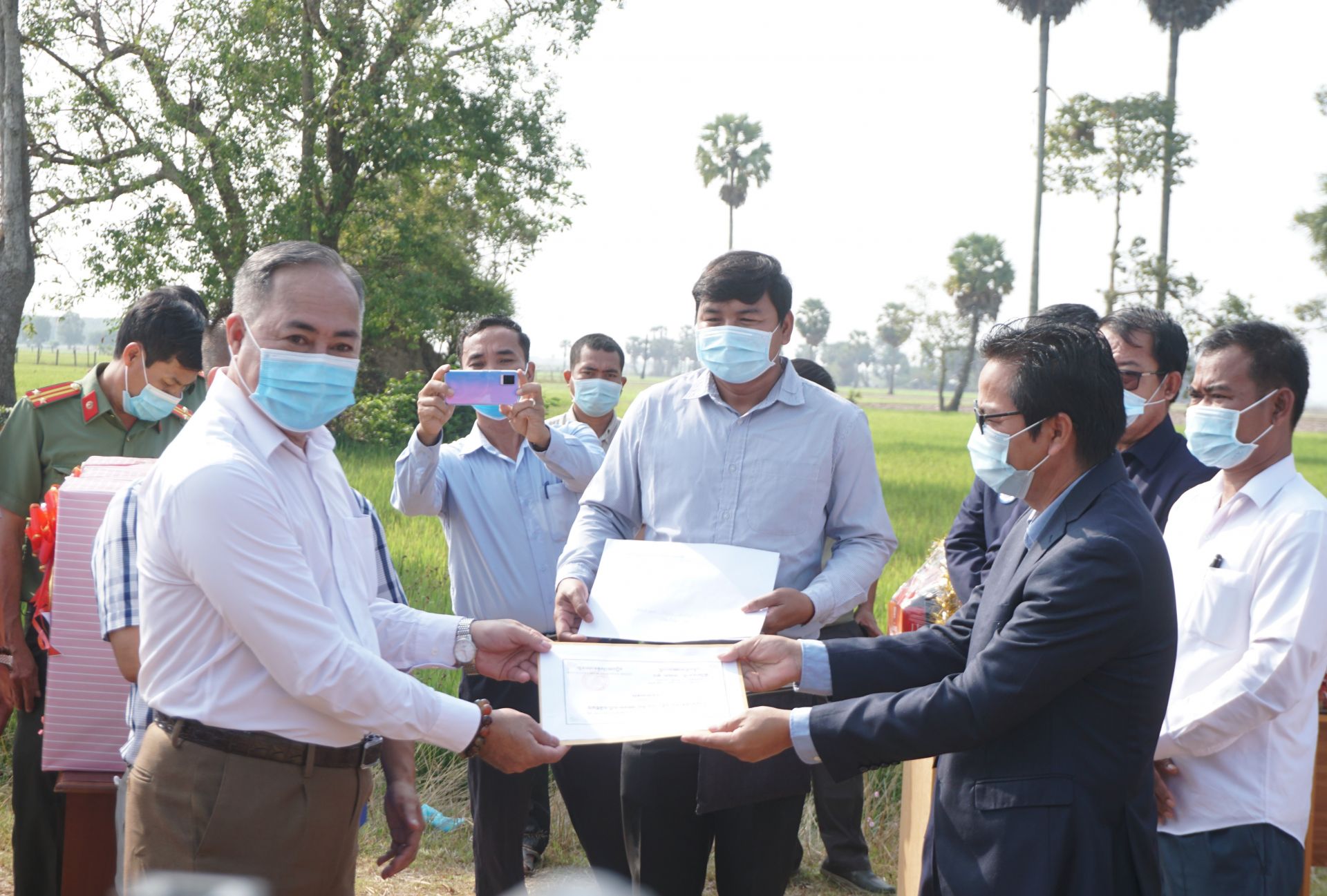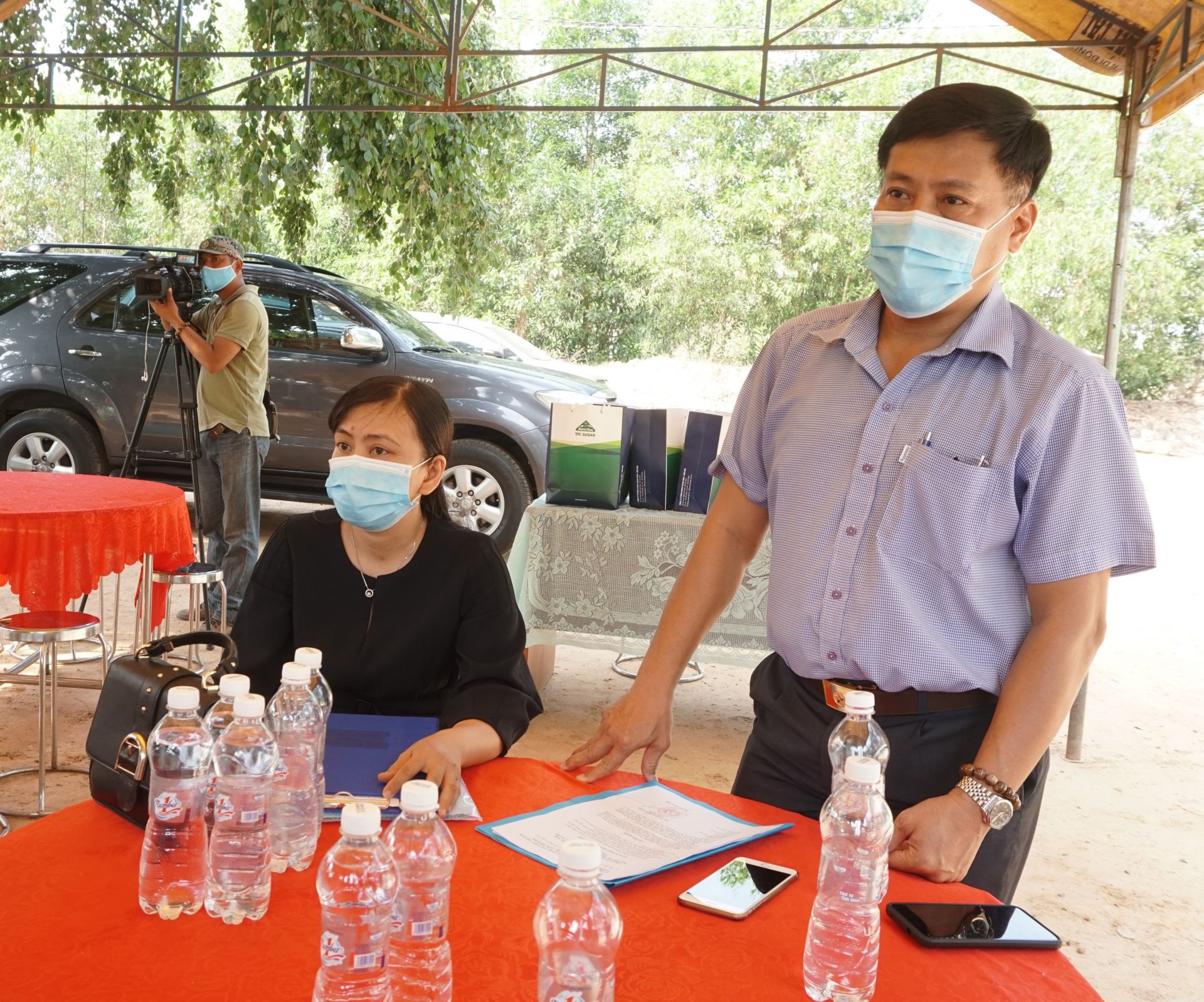 Tại đây, lãnh đạo các sở, đơn vị, lực lượng vũ trang phía Tây Ninh trao thông báo của UBND tỉnh Tây Ninh về việc cửa khẩu phụ Vàm Trảng Trâu được phép thực hiện hoạt động mua bán, trao đổi hàng hoá qua biên giới.