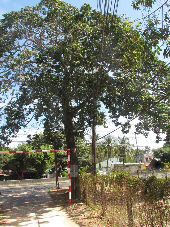 Nhìn từ xa, cây bã đậu cổ thụ hiếm hoi, đứng bên lề quốc lộ 22B, thuộc địa bàn huyện Gò Dầu, như một chiếc dù khổng lồ toả bóng che mát, như muốn giữ chân người đi đường. Một người dân nhà gần cây bã đậu cho biết, năm nay ông 50 tuổi, còn cây bã đậu có thể lớn tuổi hơn ông vì từ lúc nhỏ, ông đã thấy cây cao to lắm rồi. Nhìn cây bã đậu che mát cho người qua lại, tôi chạnh nhớ những cây bã đậu trong sân trường tiểu học ở quê tôi ngày xưa.