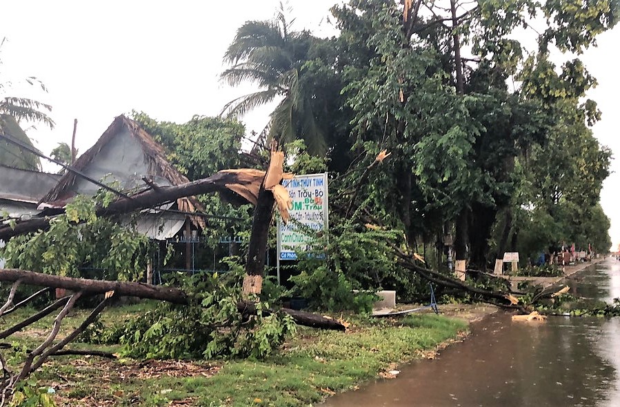 Cơn mưa lớn kèm giông gió kéo dài gần hai giờ vào chiều tối 6.5 làm nhiều cây xanh hai bên đường ĐT781 gãy đổ, ngã rạp trên mái nhà người dân, nhiều nhà cửa, cây trồng bị hư hại…