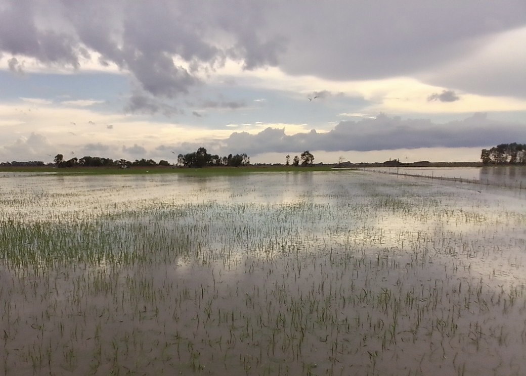 Nhiều diện tích lúa bị ngập do mưa lớn.