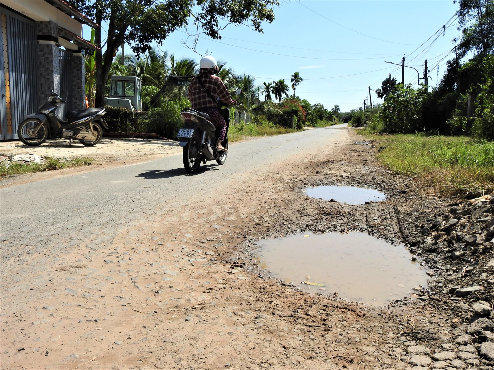 Theo người dân địa phương, đường xuống cấp do hằng ngày có nhiều xe tải nặng lưu thông, trong khi đây là tuyến đường chịu tải trọng nhỏ, chủ yếu phục vụ nhu cầu đi lại cho bà con trong xóm.