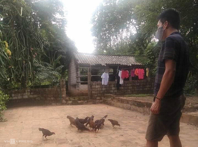 Những ngày cách ly ở quê, Tùng chăm đàn gà, rào lại mảnh vườn không ai chăm bón. Ảnh: NVCC