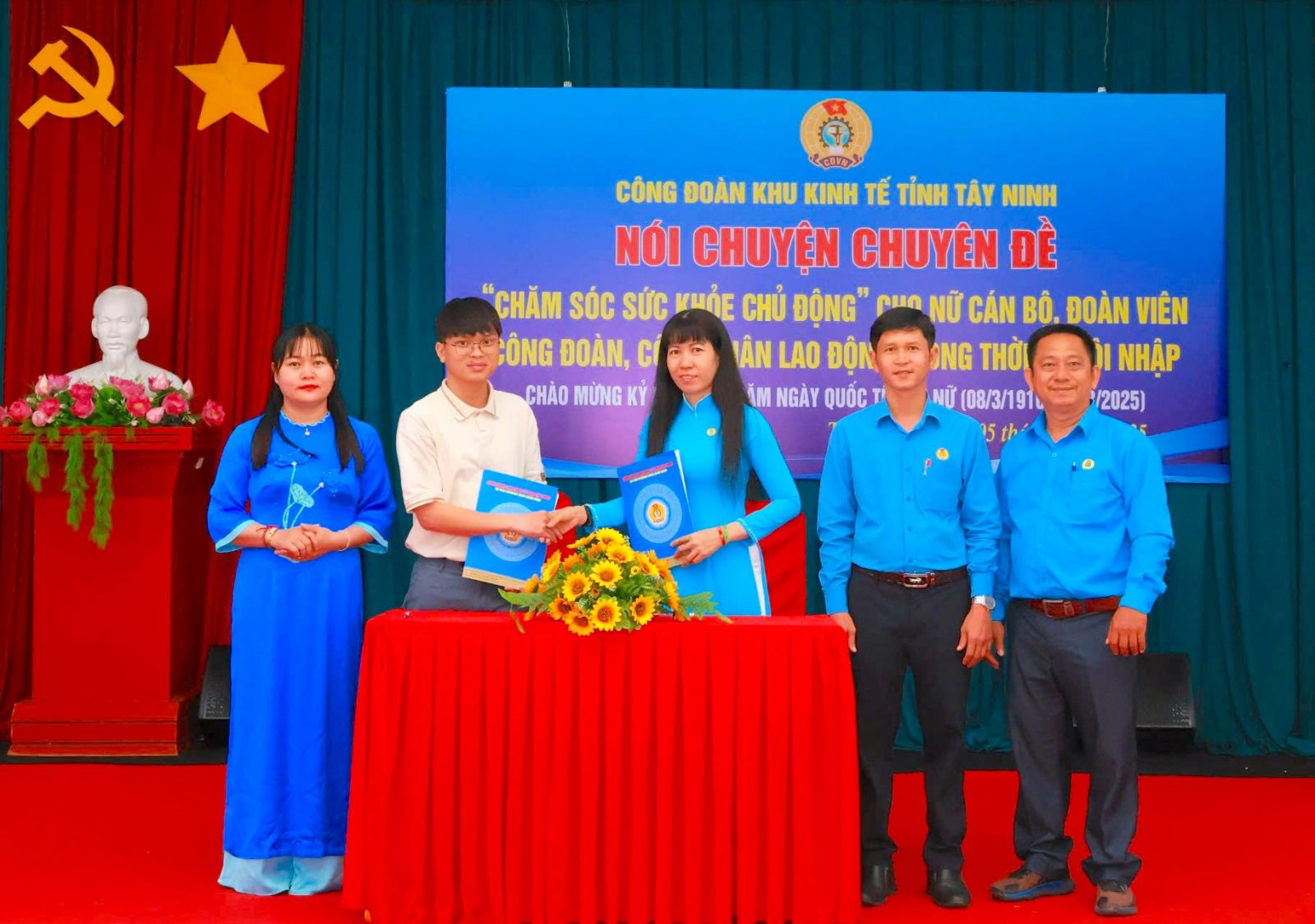 Nhân kỷ niệm 115 năm Ngày Quốc tế Phụ nữ 8.3 (8.3.1910 - 8.3.2025), Công đoàn Khu kinh tế Tây Ninh tổ chức chương trình khám sức khoẻ miễn phí và nói chuyện chuyên đề “Chăm sóc sức khoẻ chủ động cho nữ đoàn viên, cán bộ công đoàn, công nhân lao động trong thời kỳ hội nhập”.