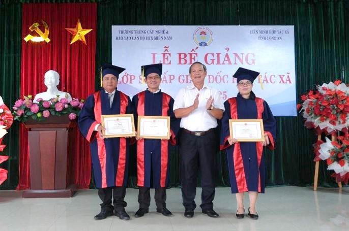 Ngày 24/9, Trường Trung cấp nghề và đào tạo cán bộ hợp tác xã (HTX) miền Nam phối hợp Liên minh HTX tỉnh Tây Ninh tổ chức Lễ bế giảng và trao chứng chỉ tốt nghiệp cho gần 30 học viên tham gia lớp Sơ cấp Giám đốc HTX năm 2025. Phó Chủ tịch Liên minh HTX tỉnh Trần Hoài Bảo dự.