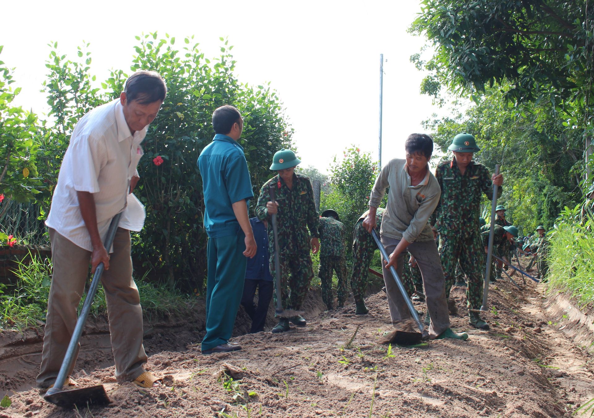 Đi trên con đường do bộ đội và nhân dân sửa chữa, dọn dẹp, bà N.T.T.D, ngụ ấp Long Chẩn, xã Long Vĩnh cho biết: Trước đây, nhiều đoạn đường gồ ghề, mùa nắng thì bụi, mùa mưa lầy lội, cỏ dại mọc um tùm. Gần đây, bộ đội về làm dân vận, phát quang cây cỏ, san lấp “ổ gà”, “ổ voi” làm mặt đường bằng phẳng giúp bà con đi lại thuận tiện. Ai cũng phấn khởi.