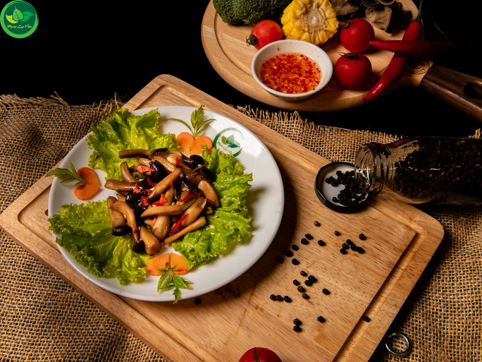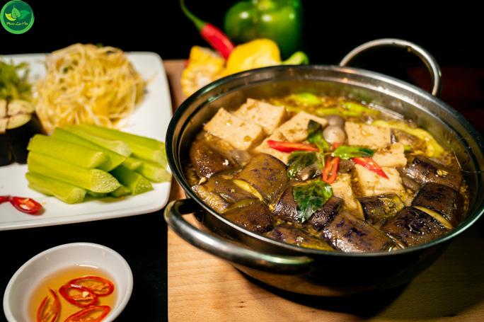 Bữa ăn hôm đó của chúng tôi rất nhiều món, bao gồm gỏi trái điều, bánh hỏi lang liêu (bánh hỏi và "heo quay" chay), tàu hũ ky cuộn mộc nhỉ, thiên nhiên hội tụ (rong biển cuộn nấm kim châm chiên giòn) và lẩu chua cay. Tất cả các món ăn đều được trình bày đẹp mắt, mùi vị thơm ngon, hợp khẩu vị nên loáng cái, món nào cũng hết sạch.