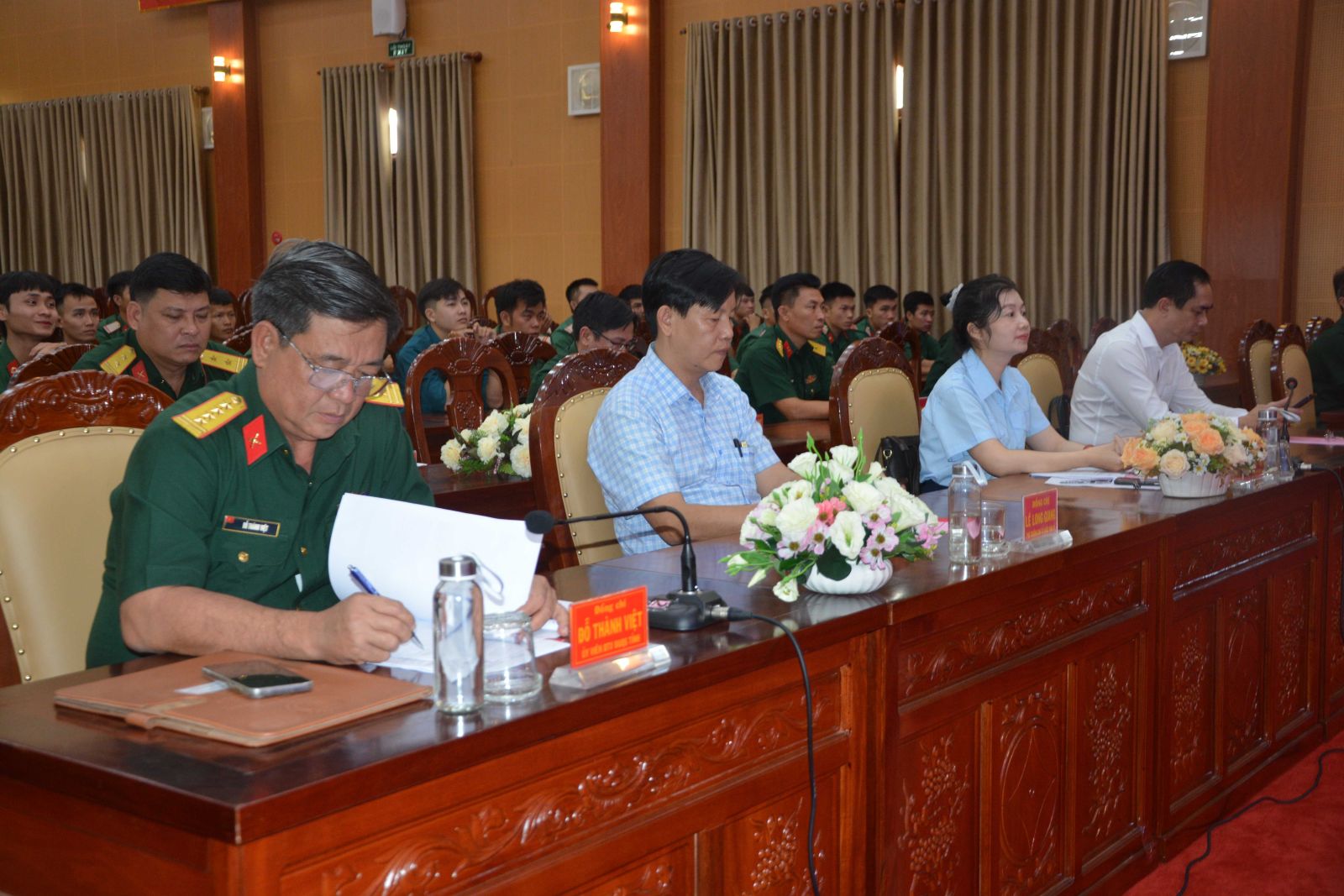 Thay mặt Đảng uỷ - Bộ CHQS tỉnh, Đại tá Đỗ Thành Việt biểu dương và ghi nhận thành tích của các đảng viên đạt được trong thời gian thực hiện nghĩa vụ quân sự; mong muốn trong thời gian tới, các đảng viên là hạ sĩ quan – binh sĩ xuất ngũ tiếp tục phát huy truyền thống của đơn vị và thành tích của bản thân, tiếp tục tham gia các phong trào hoạt động cách mạng ở địa phương.