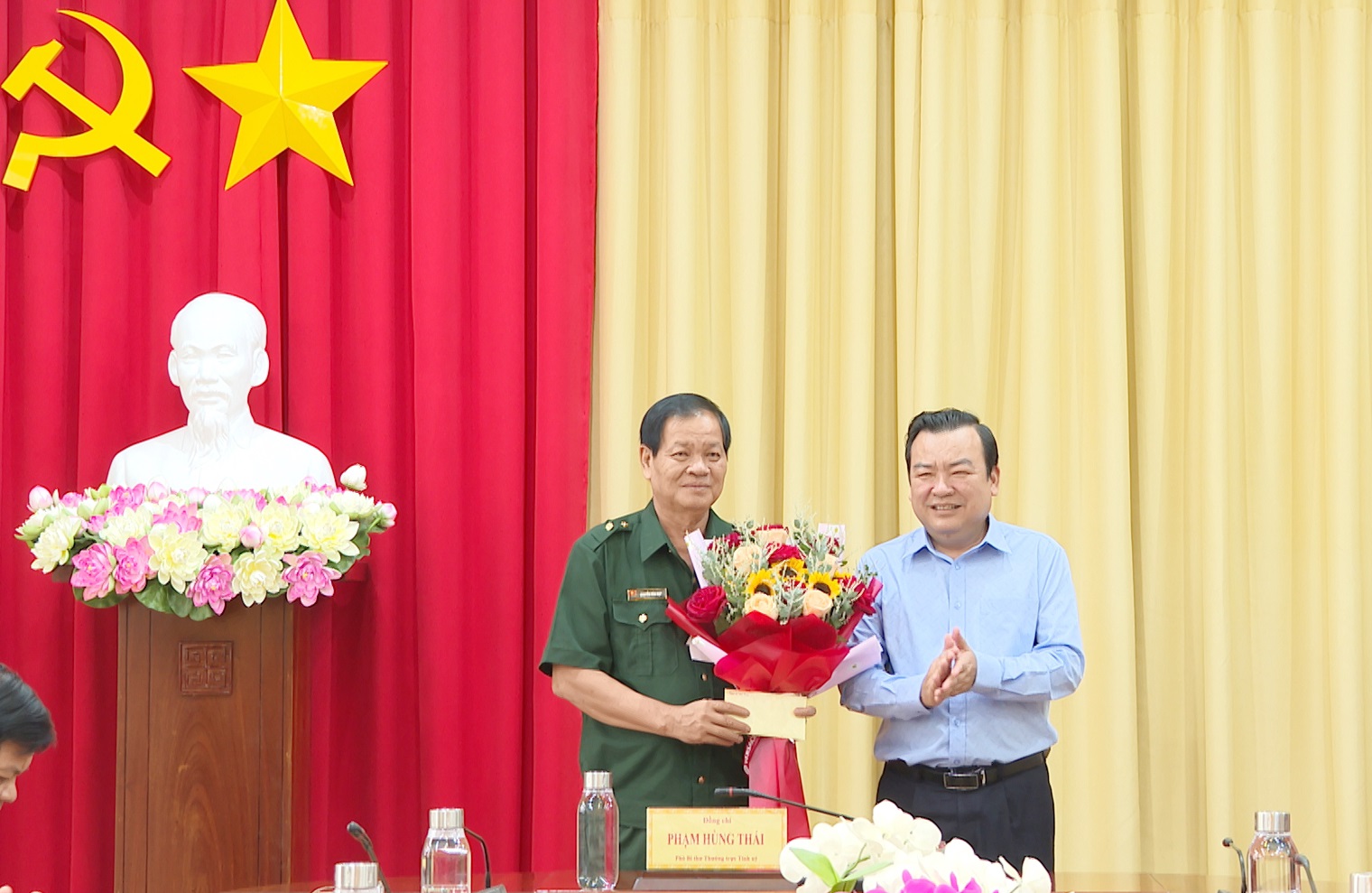 Phó Bí thư Thường trực Tỉnh uỷ Phạm Hùng Thái tặng hoa, quà cho đại diện đoàn đại biểu Hội CCB tỉnh.