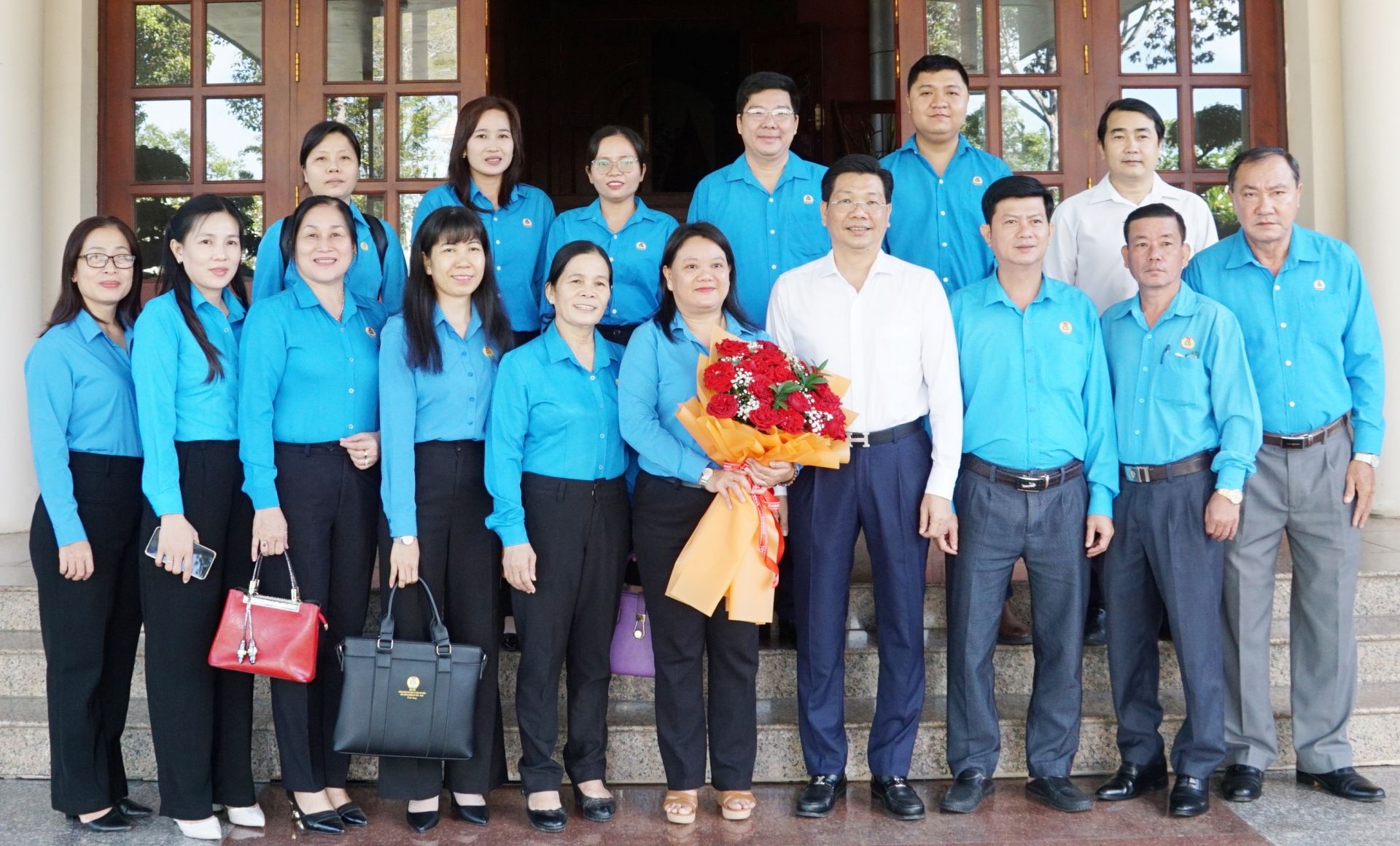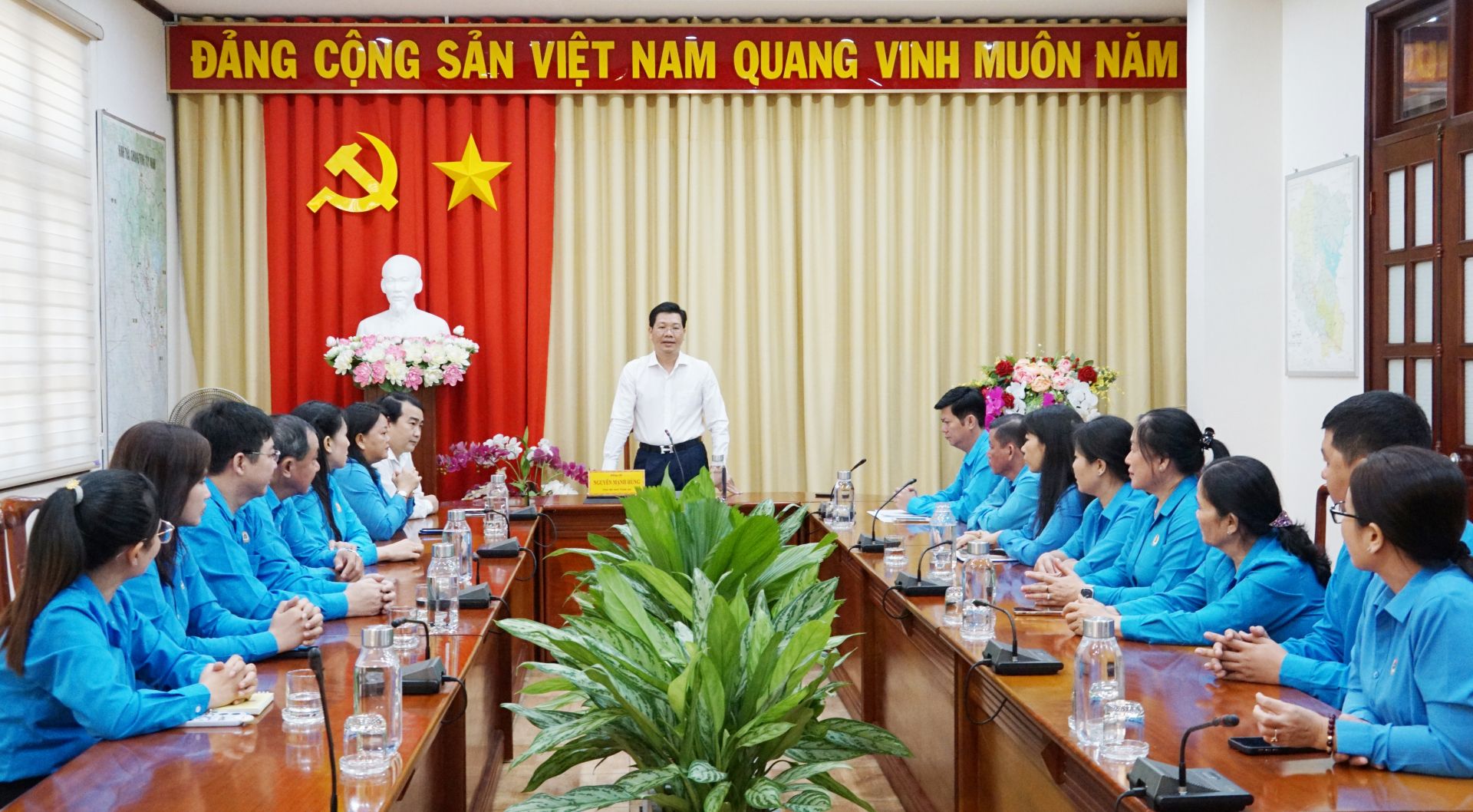 Tại buổi gặp mặt, Chủ tịch Liên đoàn Lao động tỉnh Trần Lê Duy báo cáo với Thường trực Tỉnh uỷ về thời gian, chương trình Đại hội, cũng như công tác chuẩn bị và các hoạt động bên lề Đại hội XIII Công đoàn Việt Nam.