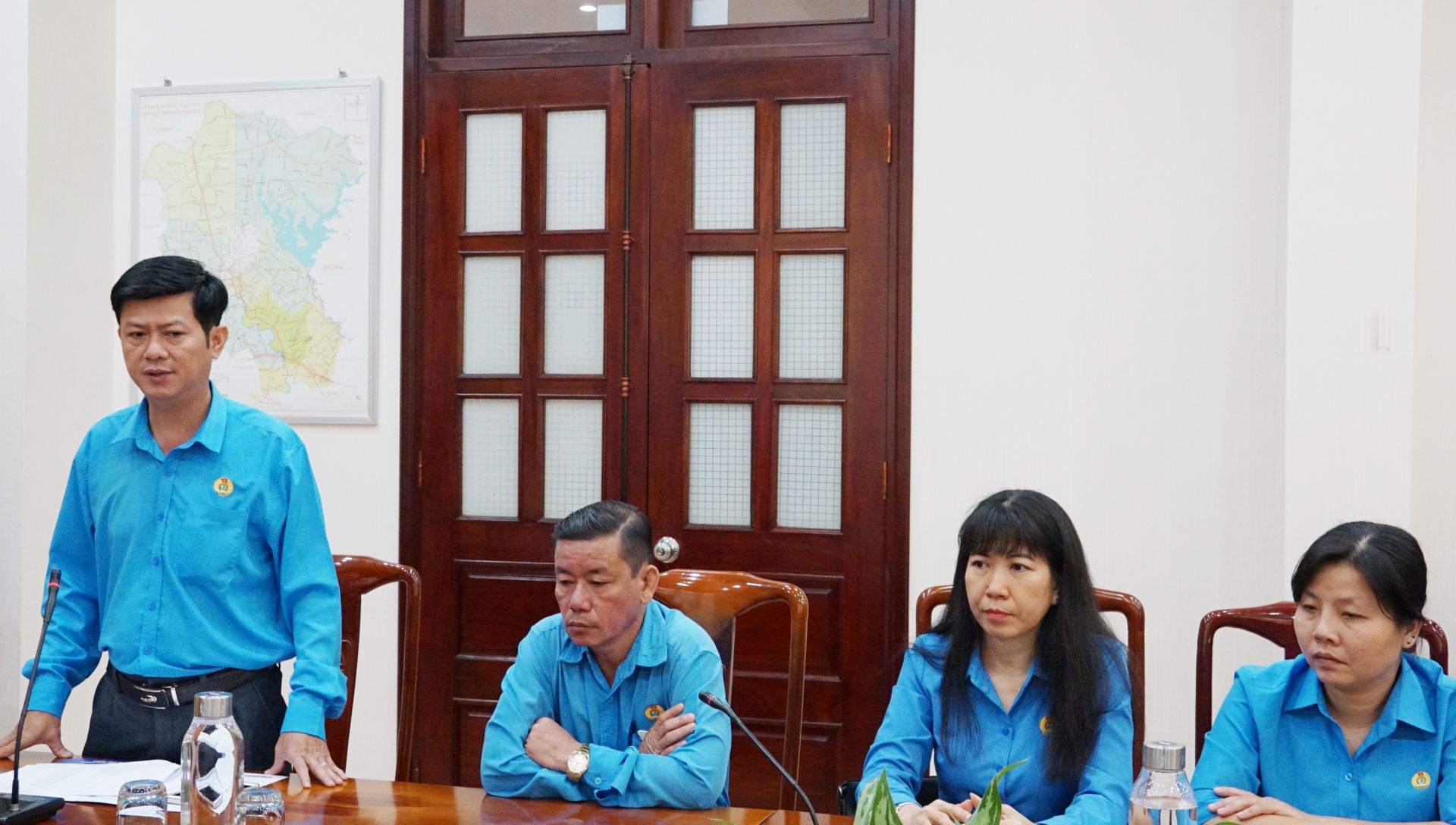 Chủ tịch Liên đoàn Lao động tỉnh Trần Lê Duy báo cáo với Thường trực Tỉnh uỷ về công tác chuẩn bị của Đoàn đại biểu Tây Ninh.