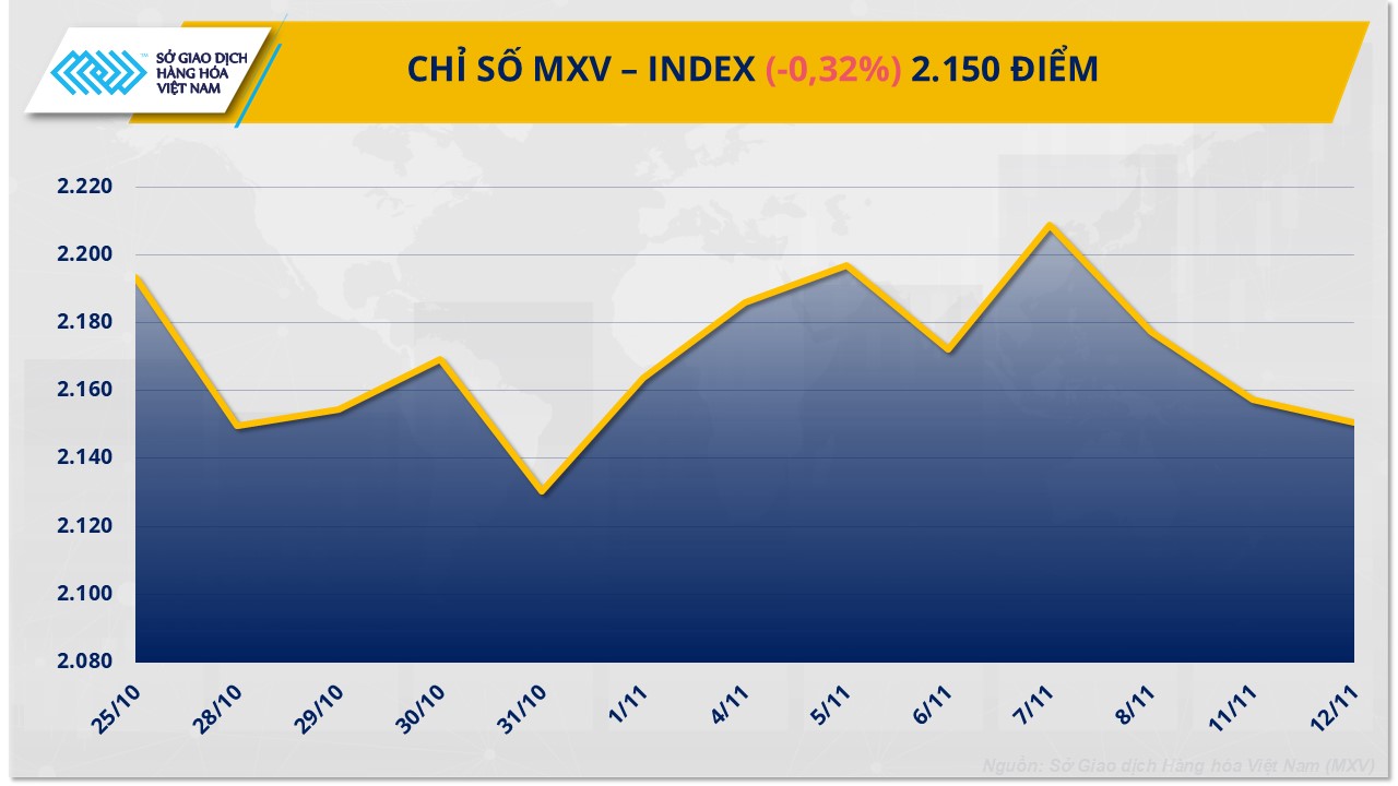 Theo Sở Giao dịch Hàng hóa Việt Nam (MXV), đóng cửa ngày 12/11, thị trường hàng hóa nguyên liệu thế giới phân hóa rõ nét.