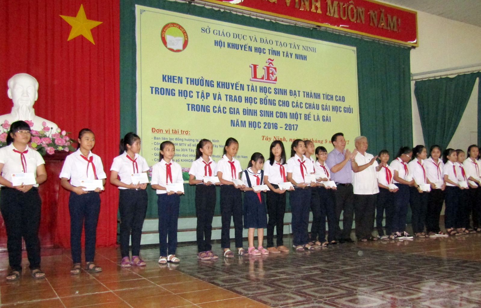 Trao học bổng cho các em học sinh học giỏi trong các gia đình sinh con một bề là gái.
