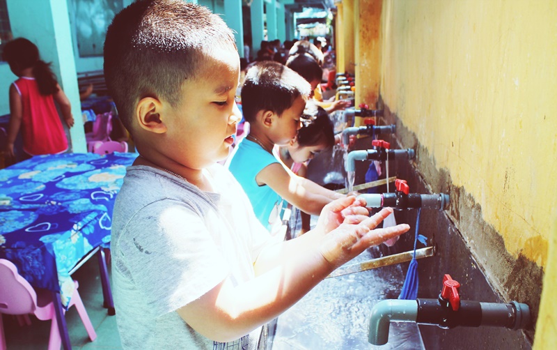 Hướng dẫn trẻ rửa tay bằng xà phòng đúng cách để phòng bệnh TCM.