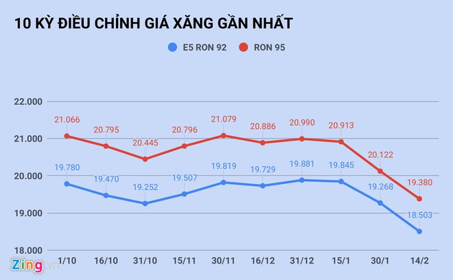 Trong lần gần nhất giá xăng dầu được điều chỉnh là ngày 30/1, liên Bộ Tài chính - Công Thương đã quyết định điều chỉnh giảm giá các mặt hàng xăng dầu.