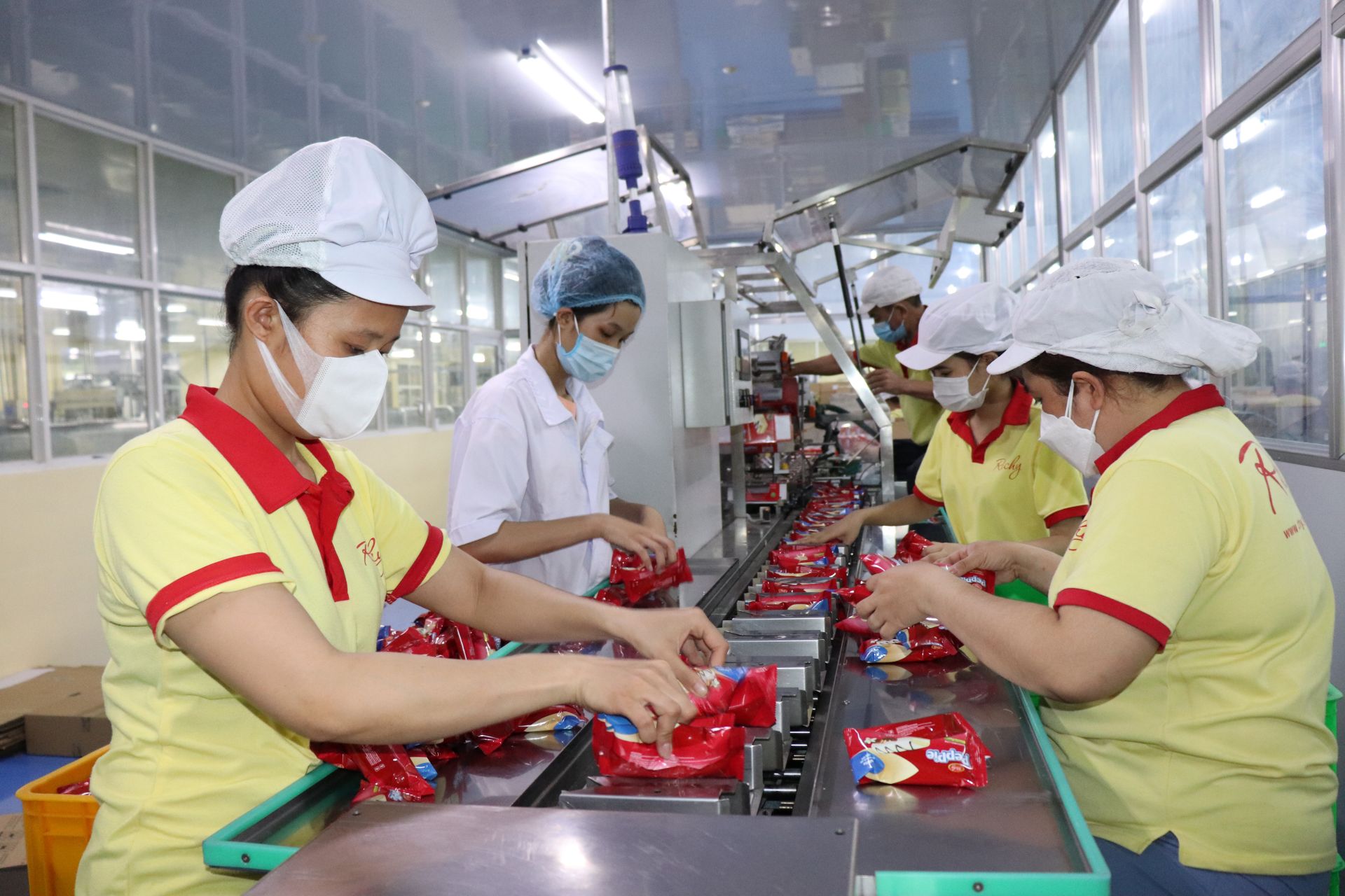Công nhân làm việc tại một doanh nghiệp thực phẩm trong KCN Trảng Bàng.