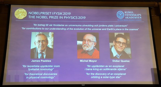 Chiều 8/10 (theo giờ Việt Nam), Ủy ban Nobel của Viện Karolinska ở thủ đô Stockholm của Thụy Điển đã công bố giải Nobel Vật lý năm 2019 thuộc về 3 nhà khoa học gồm James Peebles người Mỹ gốc Canada cùng hai nhà vật lý người Thụy Sĩ Michel Mayor và Didier Queloz với những nghiên cứu liên quan đến vũ trụ.
