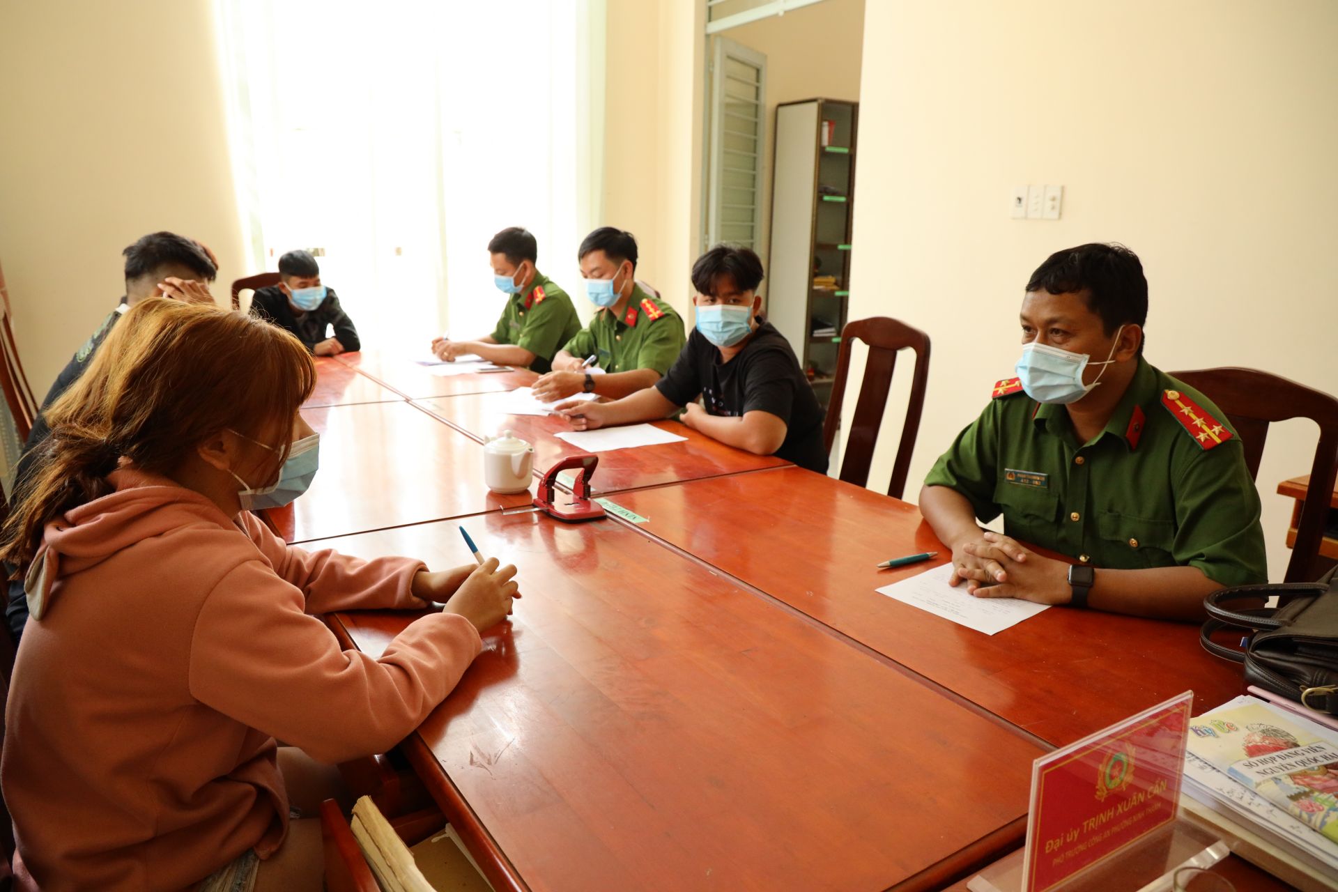 Các đối tượng tại cơ quan công an.