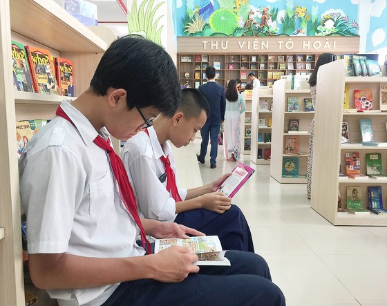 Học sinh đọc sách tại Thư viện Tô Hoài (Hà Nội).