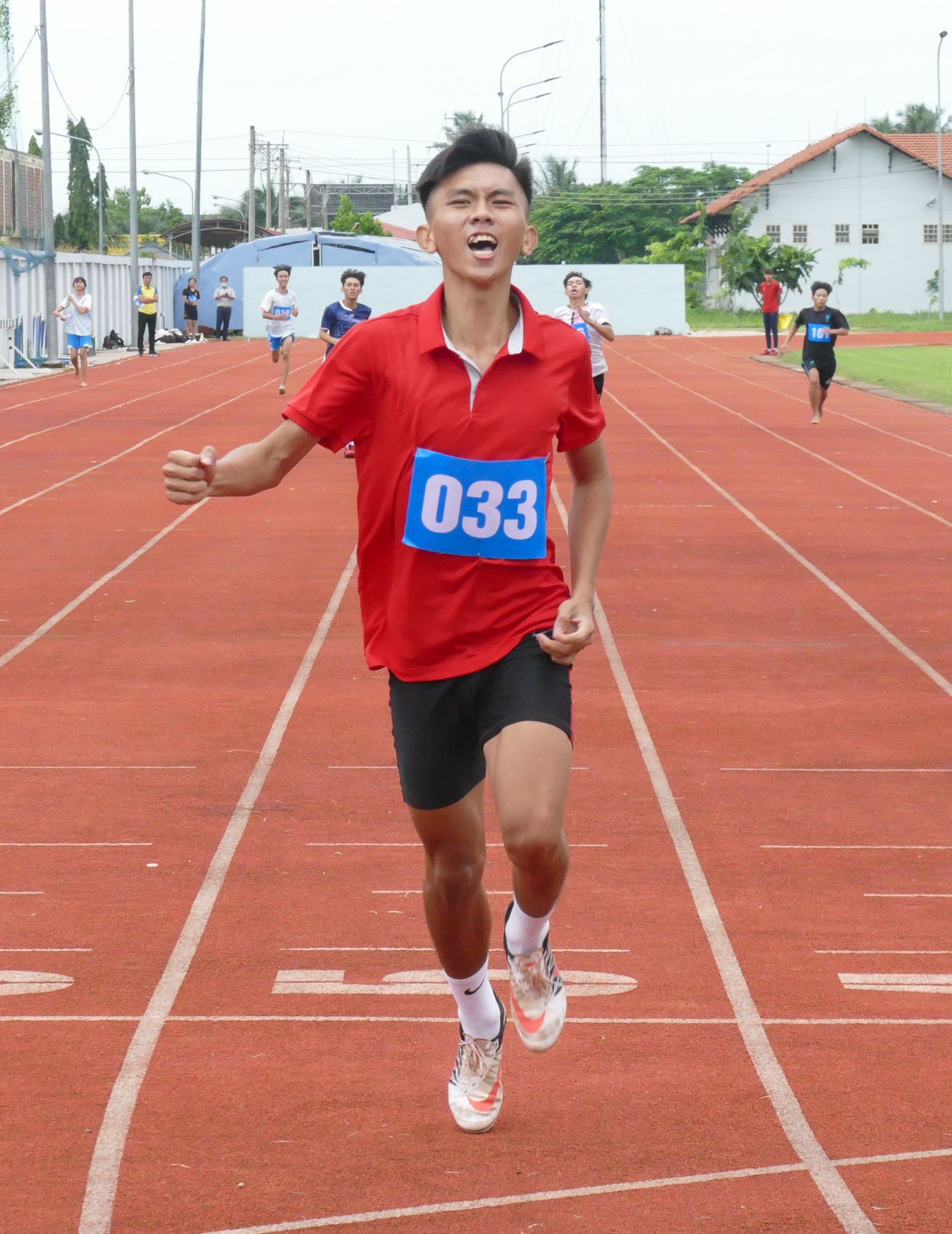 Tay đua Trương Phạm Đăng Khoa (Tân Châu) - 3 HCV cự ly 100m, 200m và 400m tại Giải vô địch điền kinh các nhóm tuổi tỉnh Tây Ninh năm 2023.