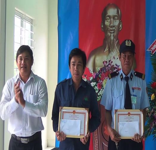 Trao giấy khen cho các ông Nguyễn Thanh Dũng và Mai Quốc Trạng. |