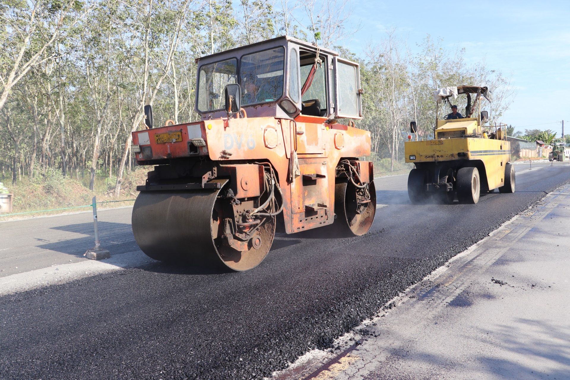 Thảm nhựa tuyến ĐT787B thuộc dự án đường liên tuyến kết nối vùng N8-787B-789.