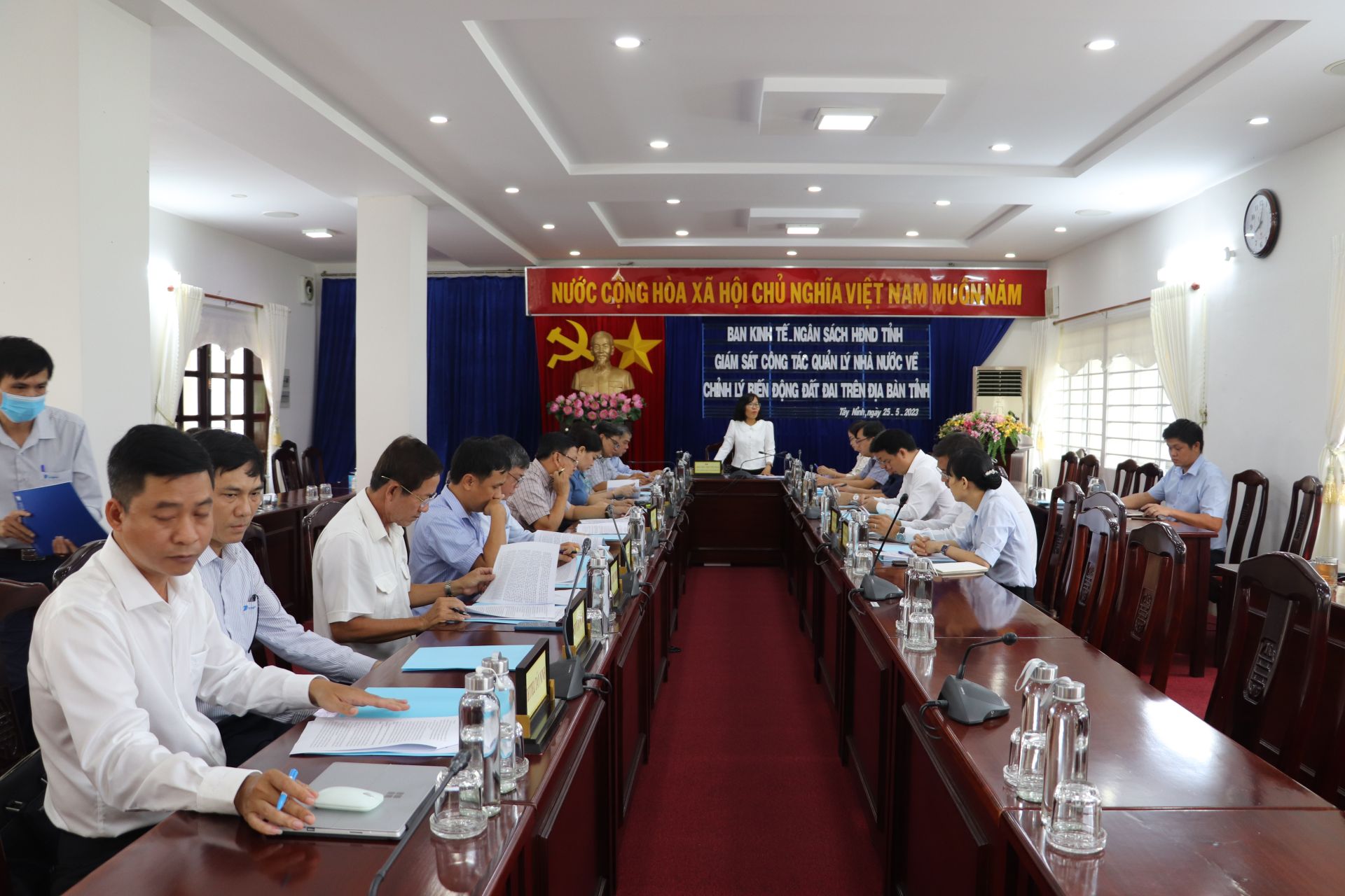 Sáng 25.5, Ban Kinh tế - Ngân sách HĐND tỉnh tổ chức giám sát công tác quản lý nhà nước về chỉnh lý biến động đất đai trên địa bàn tỉnh. Bà Nguyễn Thị Yến Mai- Trưởng Ban Tổ chức Tỉnh uỷ, Trưởng Ban Kinh tế - Ngân sách HĐND tỉnh chủ trì buổi làm việc. Tham dự có ông Nguyễn Thanh Phong- Phó Chủ tịch HĐND tỉnh; đại diện các Ban HĐND tỉnh; lãnh đạo các sở, ngành liên quan.