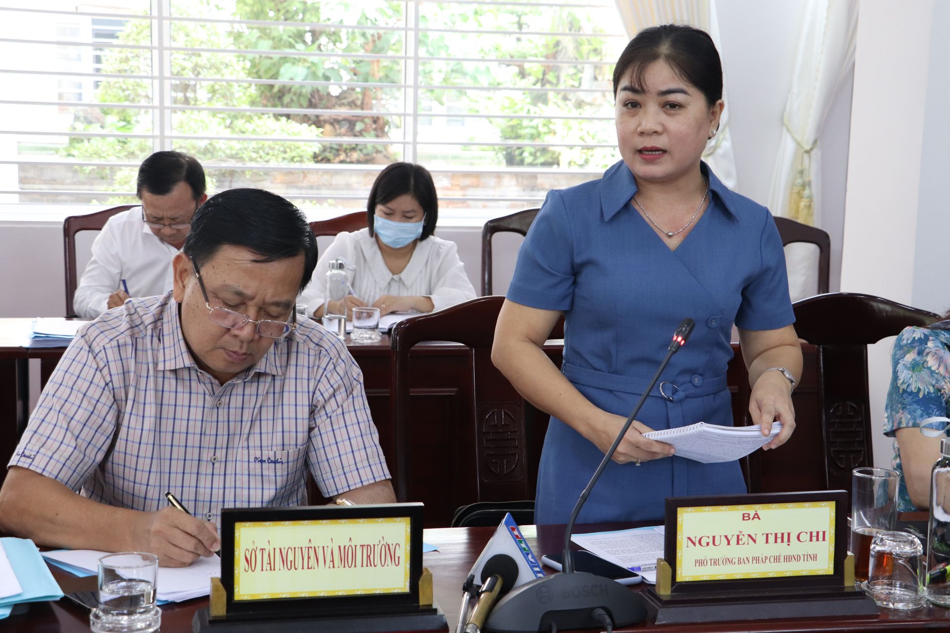 Bà Nguyễn Thị Chi- Phó trưởng Ban Pháp chế HĐND tỉnh phát biểu