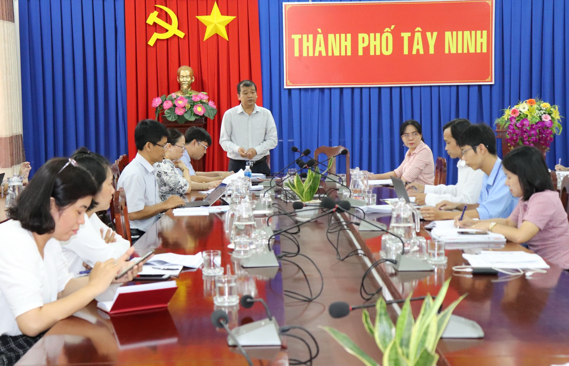 Tiếp tục chương trình giám sát chuyên đề của Thường trực HĐND tỉnh về tình hình thực hiện công tác quản lý nhà nước về đất đai, ngày 23.10, đoàn khảo sát của Thường trực HĐND tỉnh do ông Võ Đức Trong – Phó Chủ tịch HĐND tỉnh làm trưởng đoàn đã làm việc với UBND TP. Tây Ninh.