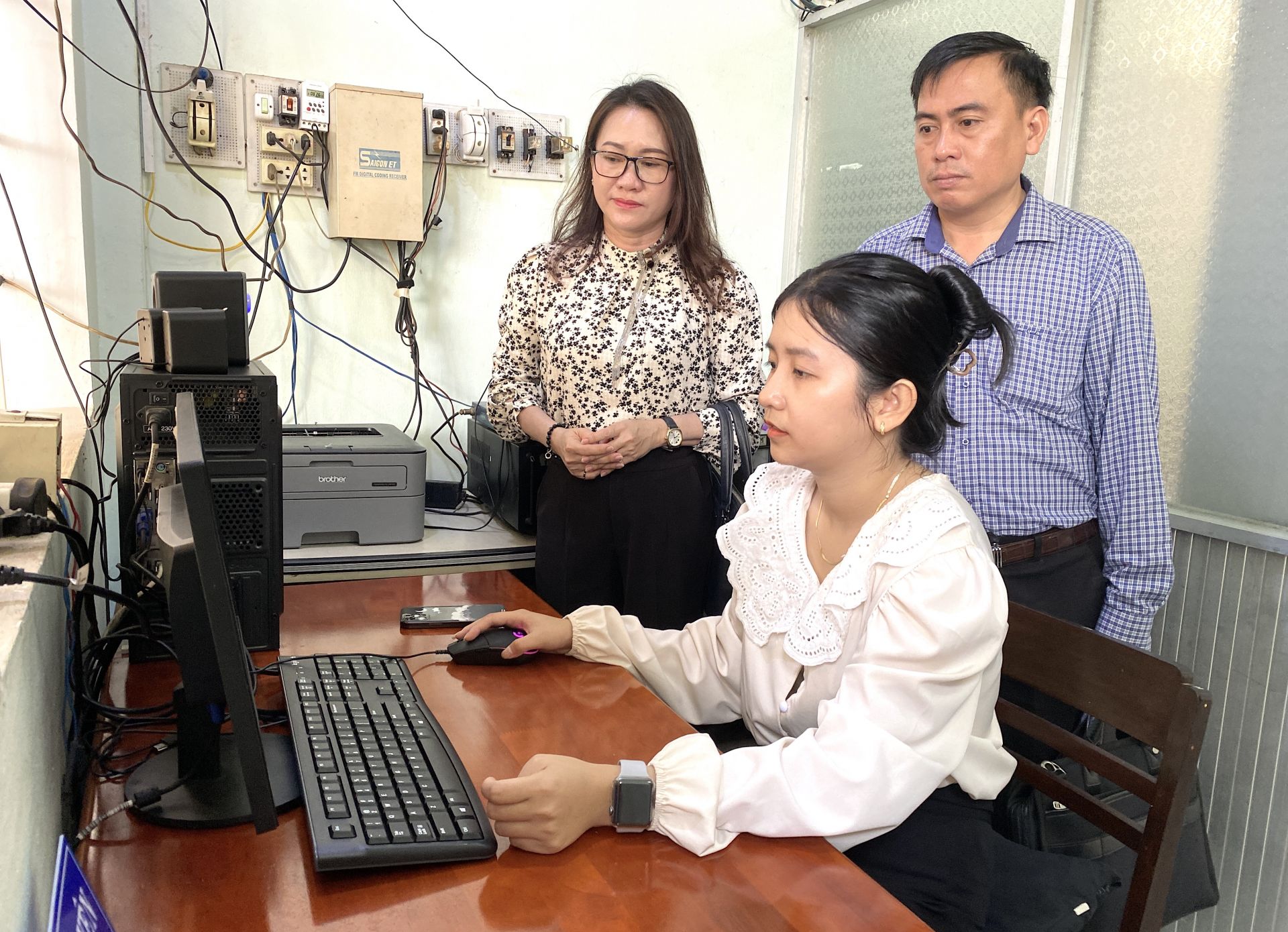 Bà Nguyễn Thị Thanh Sơn- Phó trưởng Ban Văn hoá - Xã hội HĐND tỉnh khảo sát tại Đài truyền thanh phường Hiệp Ninh, TP. Tây Ninh.