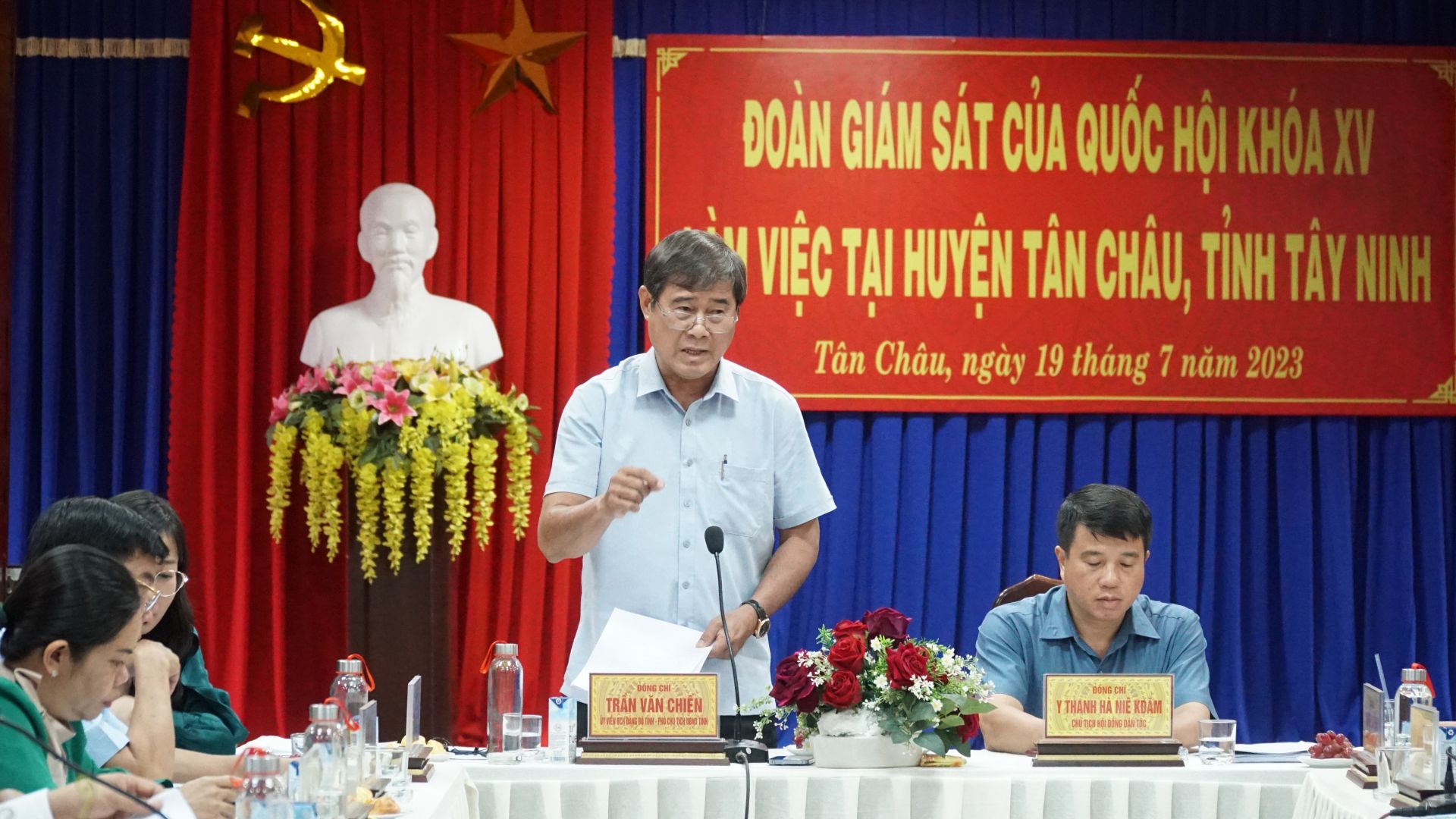 Chiều 19.7, đoàn giám sát Quốc hội khoá XV do ông Y Thanh Hà Niê Kđăm- Uỷ viên BCH Trung ương Đảng, Uỷ viên Uỷ ban Thường vụ Quốc hội, Chủ tịch Hội đồng Dân tộc làm trưởng đoàn đã đến giám sát chuyên đề việc triển khai thực hiện các nghị quyết của Quốc hội về các Chương trình mục tiêu quốc gia về xây dựng nông thôn mới, giai đoạn 2021-2025; giảm nghèo bền vững giai đoạn 2021-2025; phát triển kinh tế xã hội vùng đồng bào dân tộc thiểu số và miền núi, giai đoạn 2021-2030 trên địa bàn huyện Tân Châu.