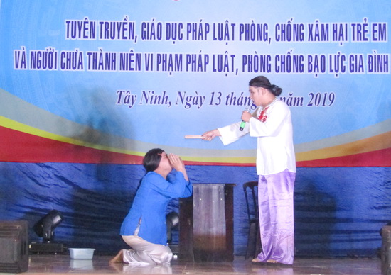 Một tiết mục về bạo lực gia đình của đội Thành đoàn Tây Ninh.
