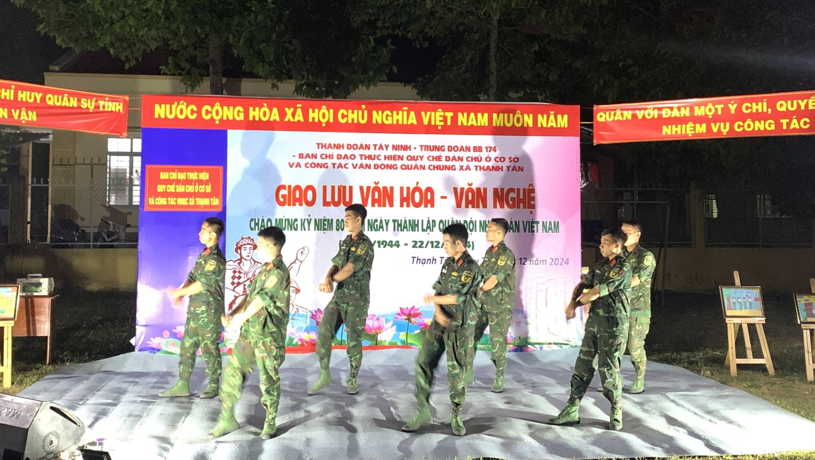 Tối 22.12, Thành đoàn Tây Ninh phối hợp Trung đoàn Bộ binh 174, Ban Chỉ đạo thực hiện quy chế dân chủ ở cơ sở và công tác vận động quần chúng xã Thạnh Tân (thành phố Tây Ninh) tổ chức chương trình giao lưu văn hoá - văn nghệ phục vụ cho hơn 100 các cán bộ, chiến sĩ thuộc Tiểu đoàn Bộ binh 14, Trung đoàn Bộ binh 174, đoàn viên, thanh niên và các em thiếu nhi trên địa bàn.