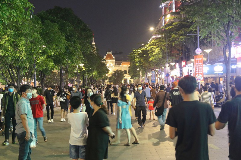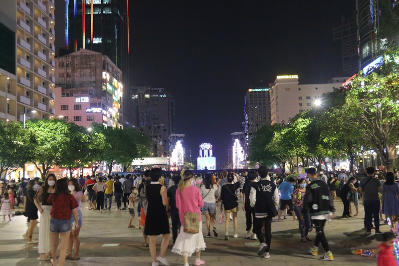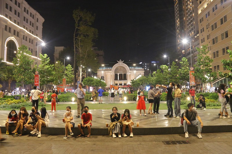 Được biết năm nay TP.HCM cũng không tổ chức bắn pháo hoa đón năm mới như thường lệ. Theo ghi nhận, dù không được tham dự chương trình đếm ngược nhưng từ 19 giờ, đông đảo người dân đã có mặt tại phố đi bộ Nguyễn Huệ để chờ đón năm mới. Một số người đi dạo trên phố đi bộ, một số ngồi hóng mát tại công viên trước Nhà hát lớn TP và trước bưu điện TP để chờ đến giao thừa.