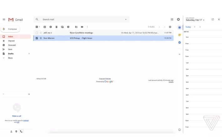 Diện mạo mới của Gmail. Ảnh: TheVerge